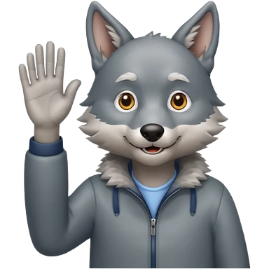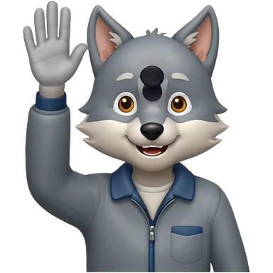 wolfgrandpa wholebody standing and waving his hand emoji | AI Emoji Generator