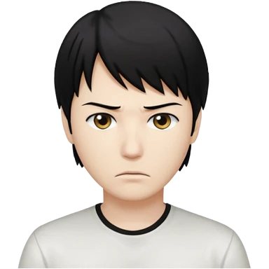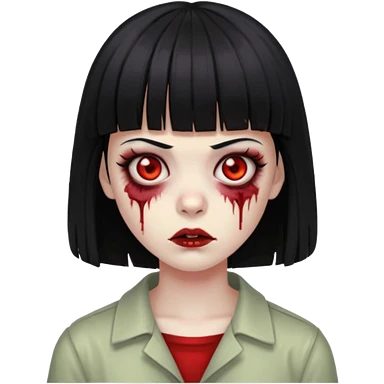 zumbie com cabelo preto e liso de franja vegana e olhos vermelho emoji