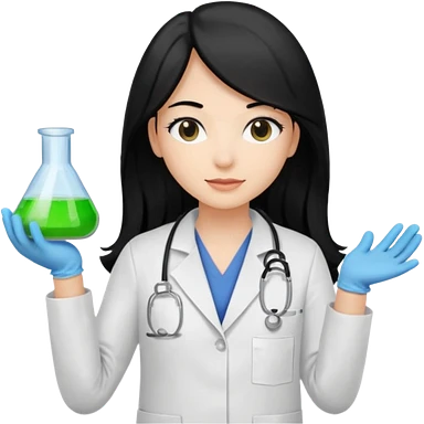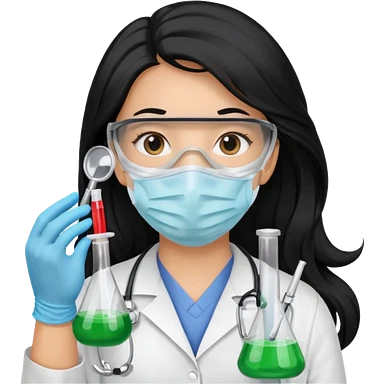 doctora con gauntes y marallilas e insumos lavoratorio pelo negro largo triguella emoji