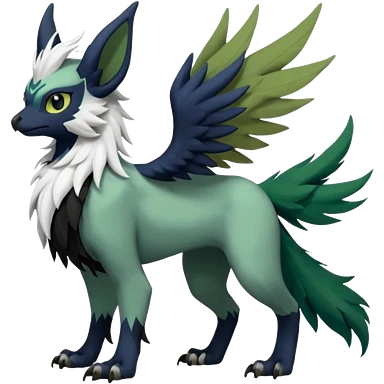 Epic complex detailed pastel minty green, pastel beige yellow pastel realistic aesthetic-scenic-Fakémon-Zorua-Litten-Trico-Sergal-Serval-Vernid-creature (full body) with far wings, shiny sparkly fairycore theme emoji