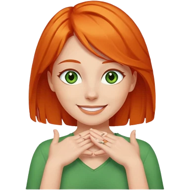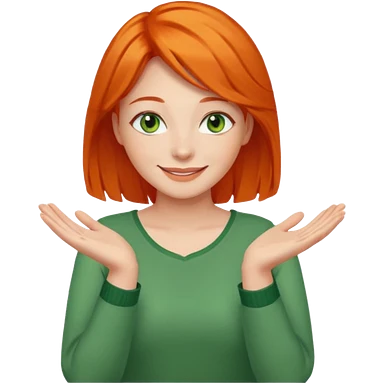 woman with green eyes and orange hair putting her pis on her shoulders (pose) happily emoji