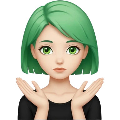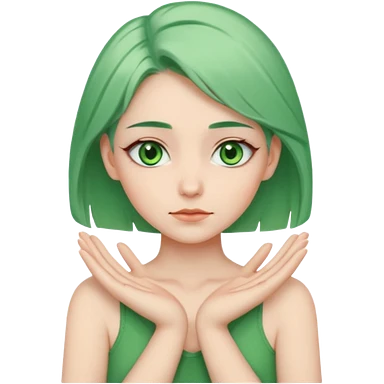 woman with green eyes and green hair putting her pis on her shoulders (pose) emoji