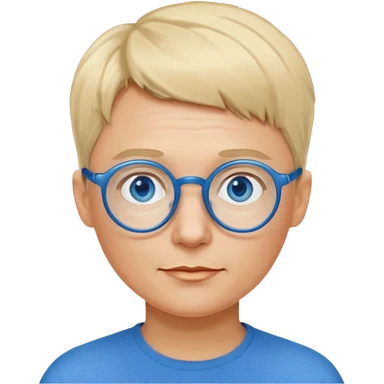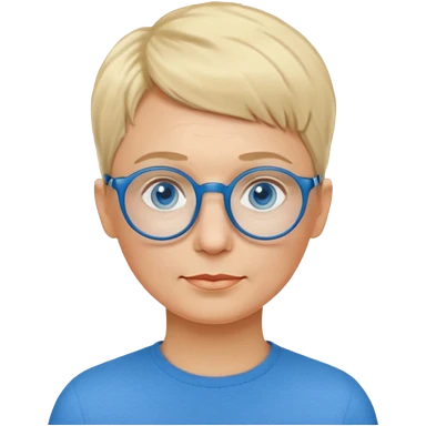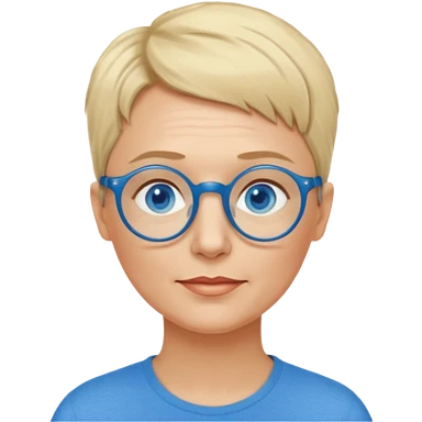 woman 50 years old, very short blonde hair like a man, blue eyes and blue round glasses emoji