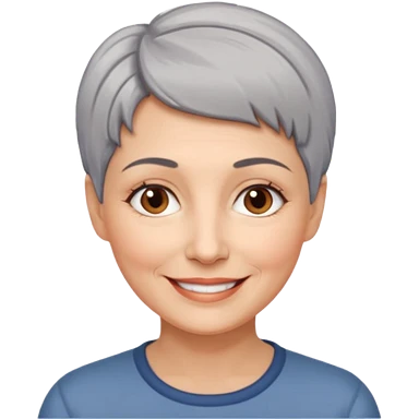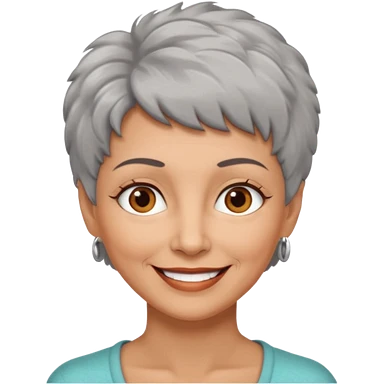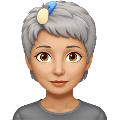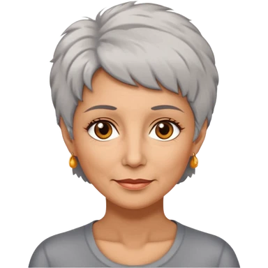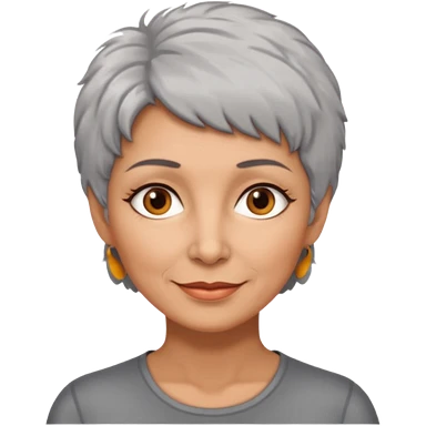 woman 50 years old, very short grey fluffy hair, tannes skin and brown eyes emoji