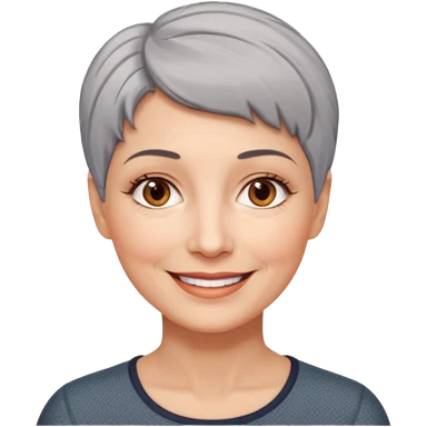 woman 50 years old, very short grey hair brown eyes smile emoji