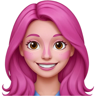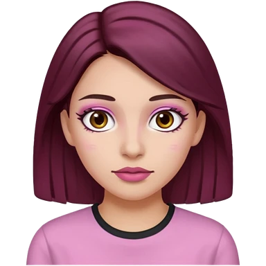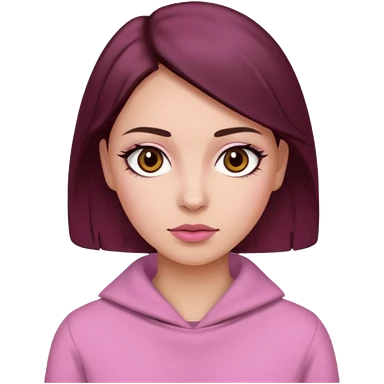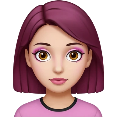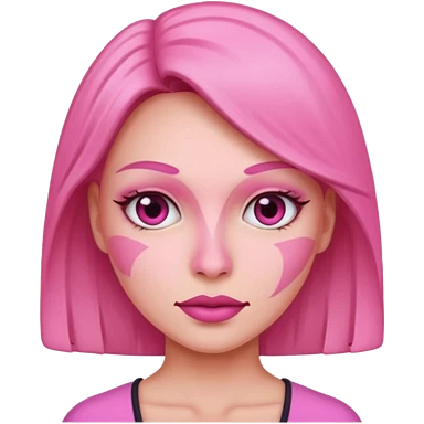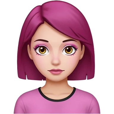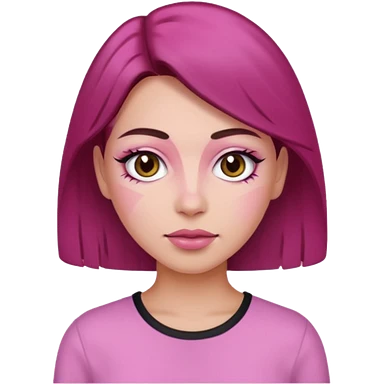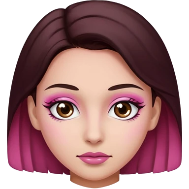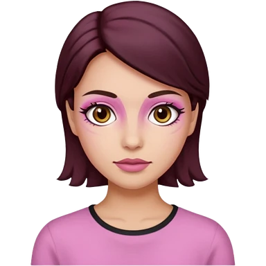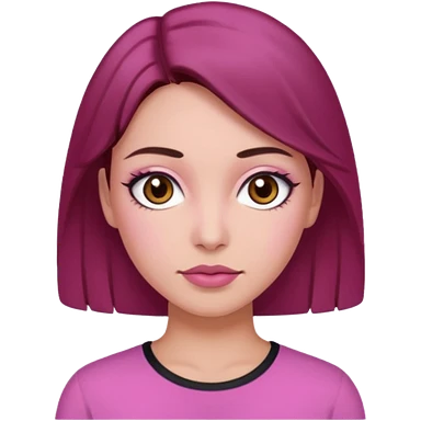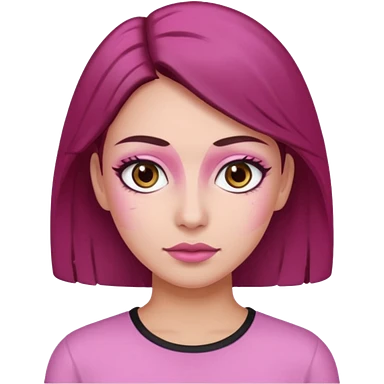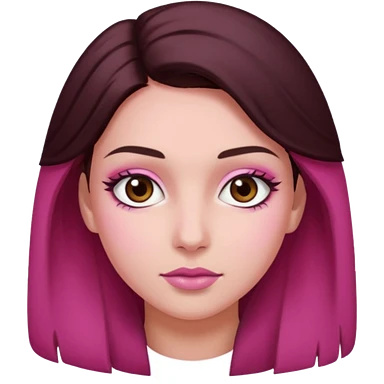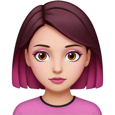 Woman with pink all skin, white background, dark brown hair and hazel eyes and brown eyebrows emoji