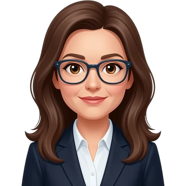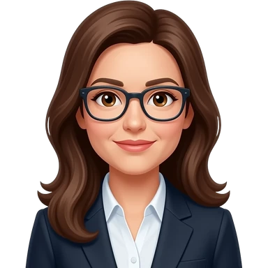 woman, 40 years old, long brown hair, professional, glasses, brown eyes emoji