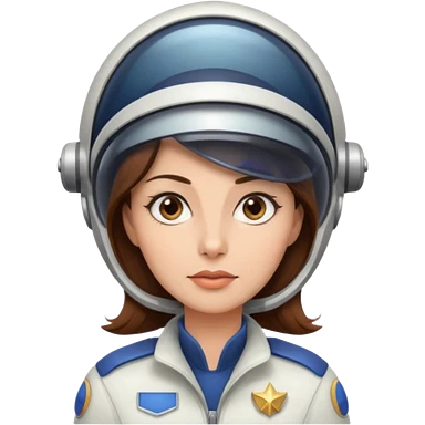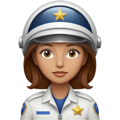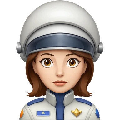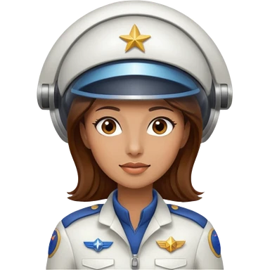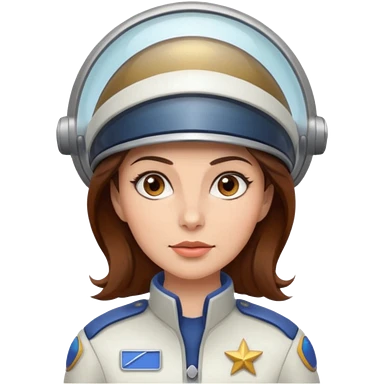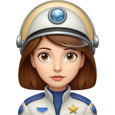 woman with brown hair and brown eyes. space ship captain with white hat emoji