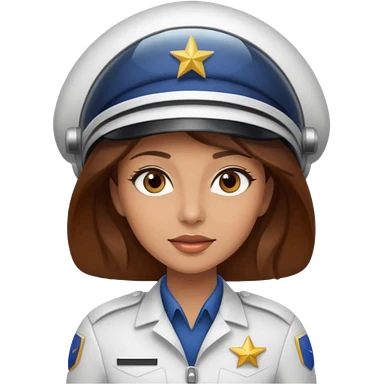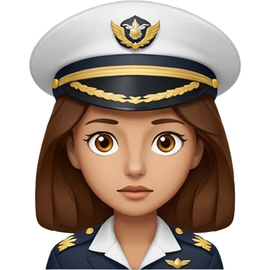 woman with long brown hair and brown eyes. space ship captain with white military hat emoji
