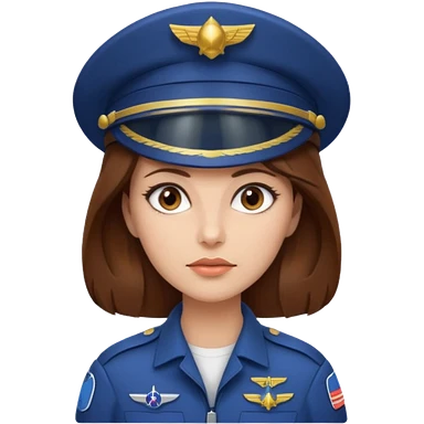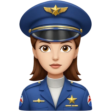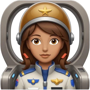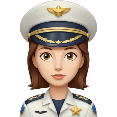 woman with brown hair and brown eyes. space ship captain with white military hat emoji