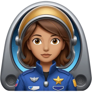 woman with brown hair and brown eyes. space ship captain emoji