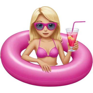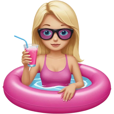 woman with blonde hair and blue eyes sitting in pink pool tube in a pool sipping a drink emoji