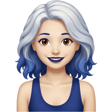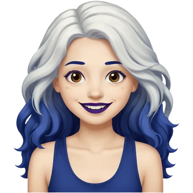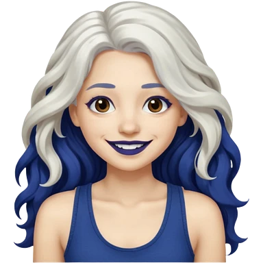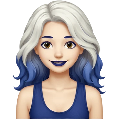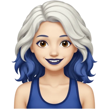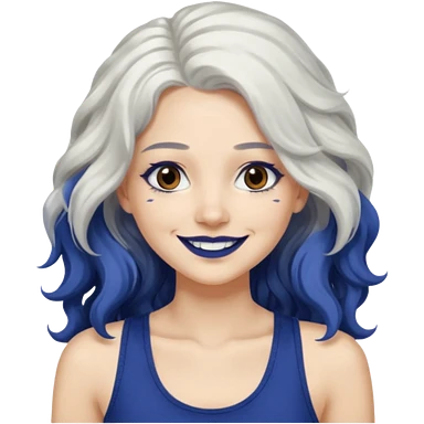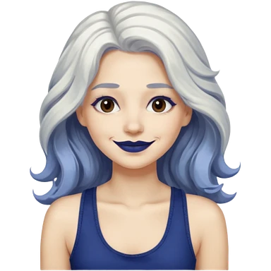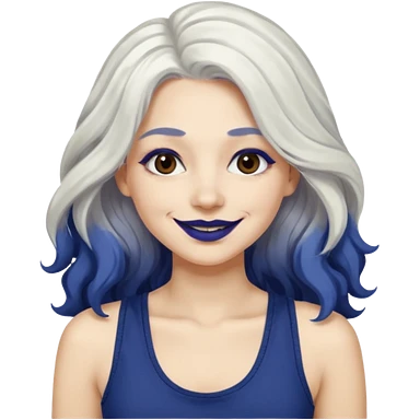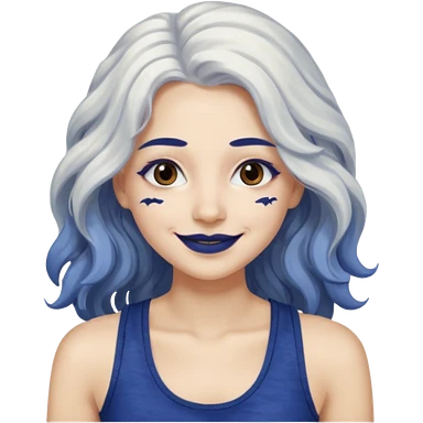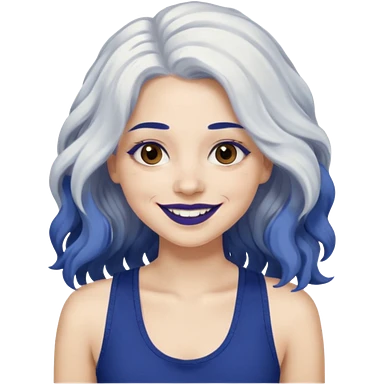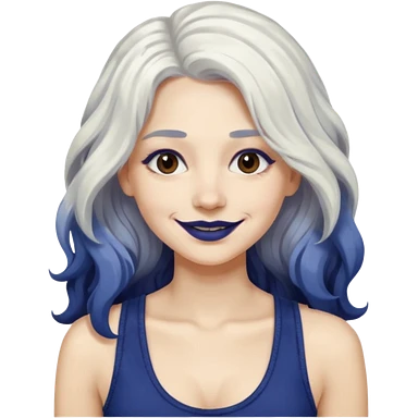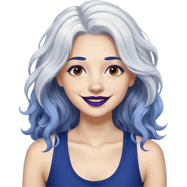 woman with wavy long white hair and brown eyes with dark blue lipstick smiling in a grunge tanktop emoji