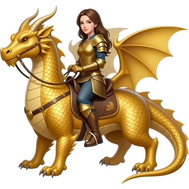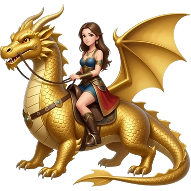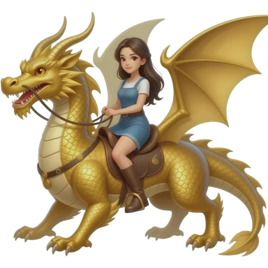 woman riding a very plain but large gold dragon that is mostly smooth with no horns or spikes emoji