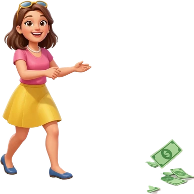 a woman throws and scatters money emoji