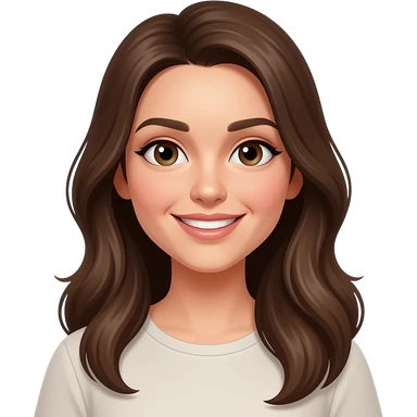 Beautiful woman with long dark brown hair, big almond shape brown eyes with long eyelashes, pretty smile with medium full lips, defined jawline, medium size nose, wearing a power suit emoji