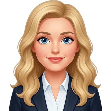 woman, blue eyes, late twenties, blonde hair, long wavy hair, smart outfit emoji