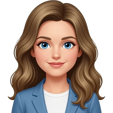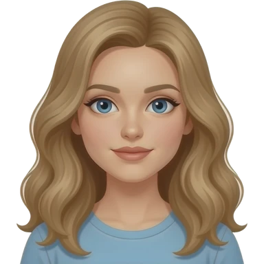 woman, blue eyes, late twenties, dark blonde hair, long wavy hair emoji