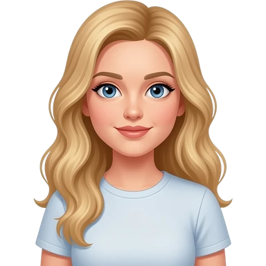 woman, blue eyes, late twenties, blonde hair, long wavy hair, tshirt emoji