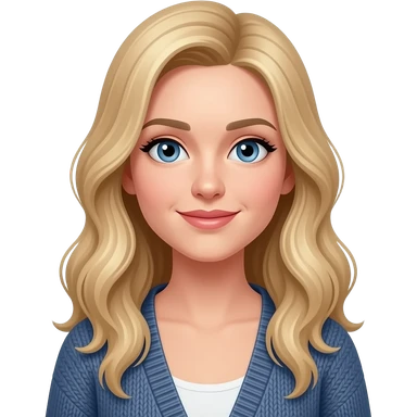 woman, blue eyes, late twenties, blonde hair, long wavy hair, cardigan emoji