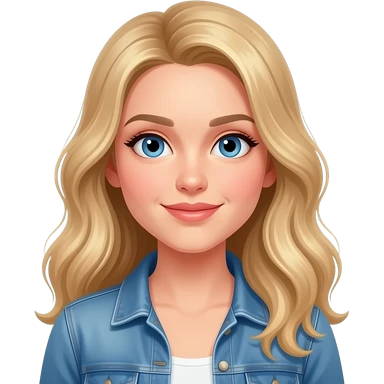 woman, blue eyes, late twenties, blonde hair, long wavy hair, casual outfit emoji