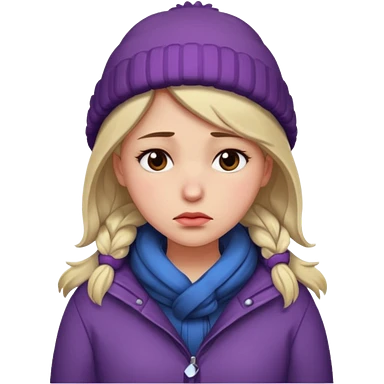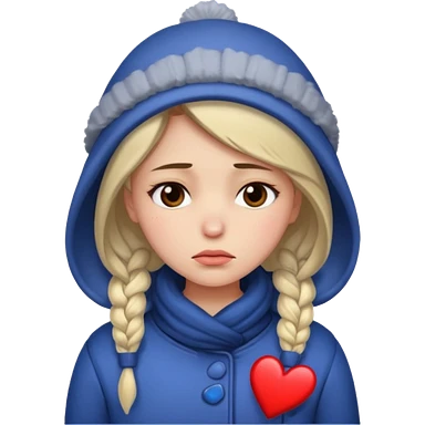 woman broken hearted, looking down sad, wearing a winter outfit emoji
