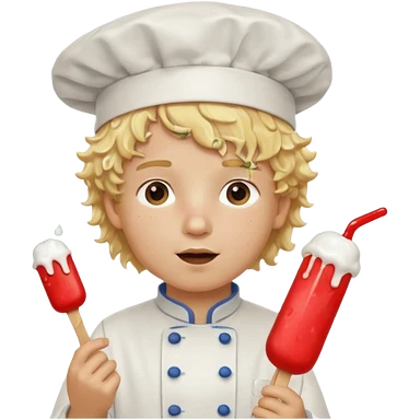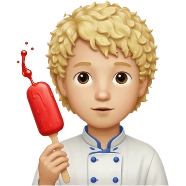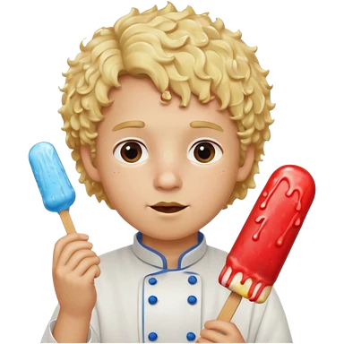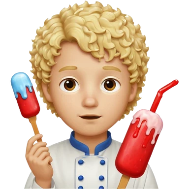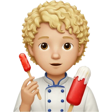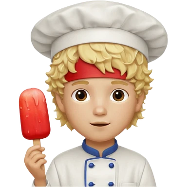 boy blonde curly hair, chef, eating blue ice pop emoji