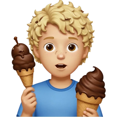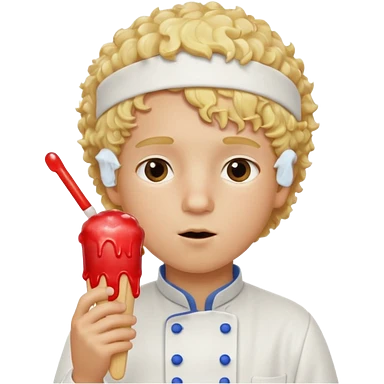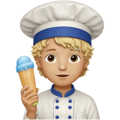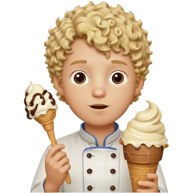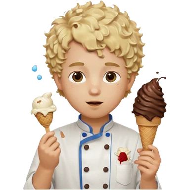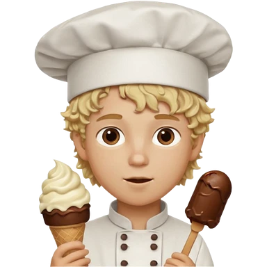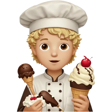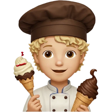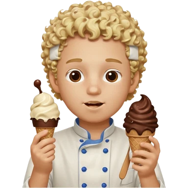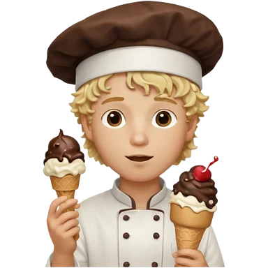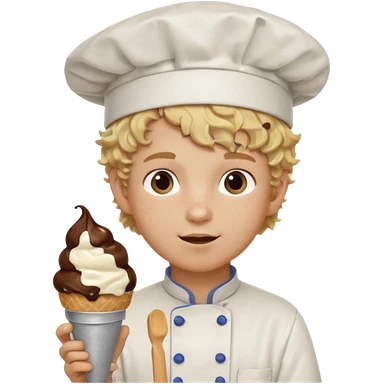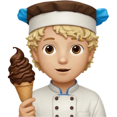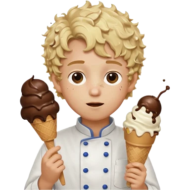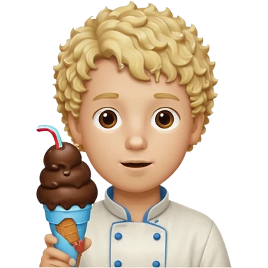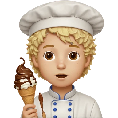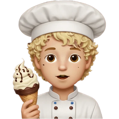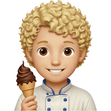 boy blonde curly hair, chef, eating chocolate ice cream emoji