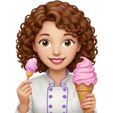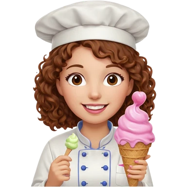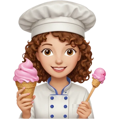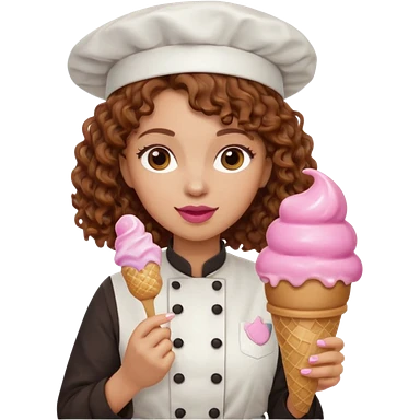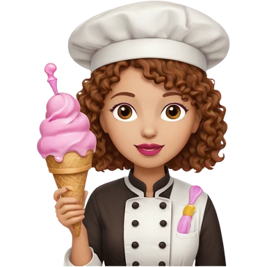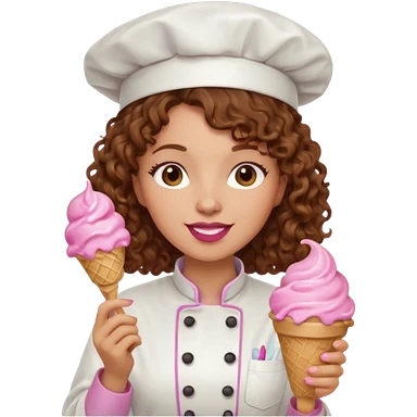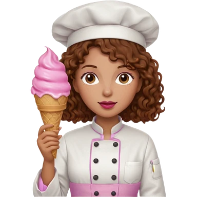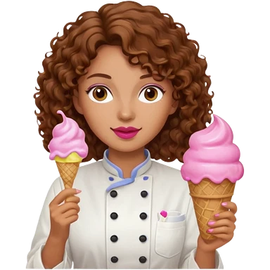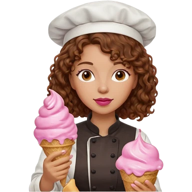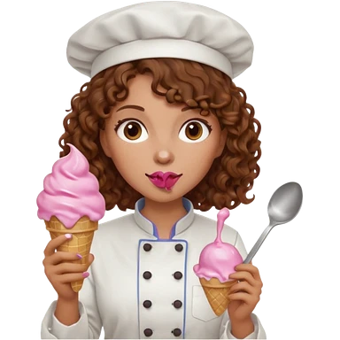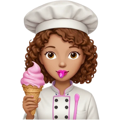 woman brown curly hair, chef, eating pink ice cream emoji | AI Emoji Generator