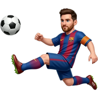 Create Messi performing the action of controlling a ball coming from the air emoji
