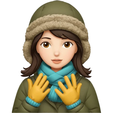 Woman bundled up with parka, hat, scarf, gloves emoji | AI Emoji Generator