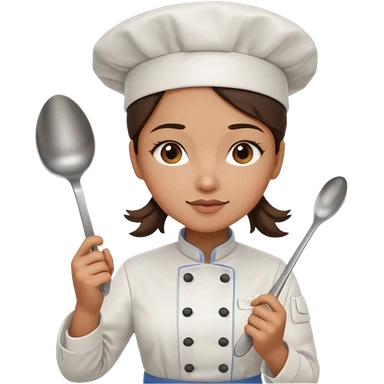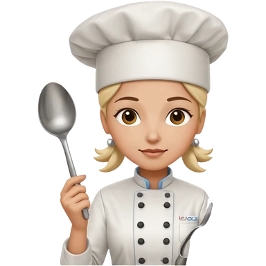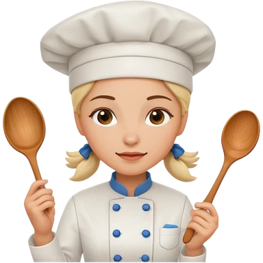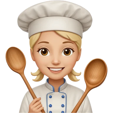 A woman with red Chinese hair and a chef's outfit, chef's hat and a wooden spoon emoji