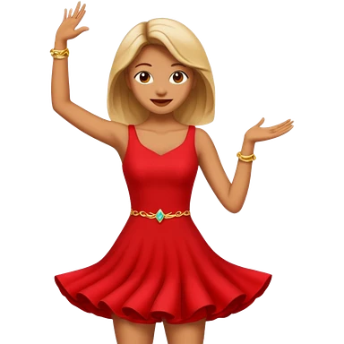 black woman dancing in red dress emoji