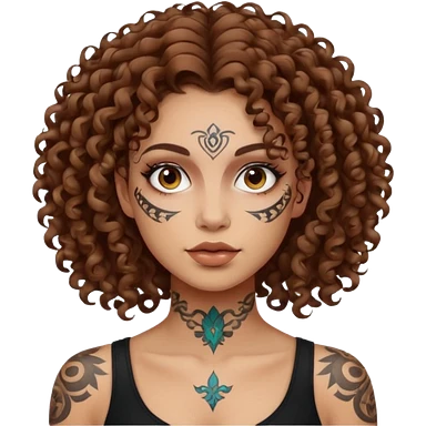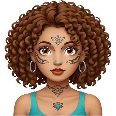 woman curly hair and heavy face tattoo emoji | AI Emoji Generator