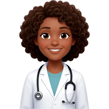 woman dark skin long dark curly hair with a doctor uniform emoji | AI Emoji Generator