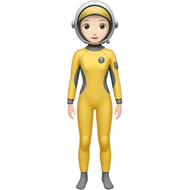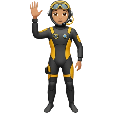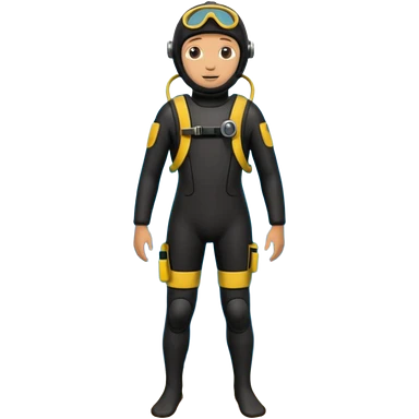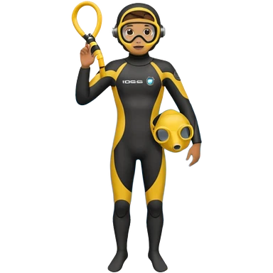 a woman with an a black scubadiver suit. she has blue eyes inside the dive mask. brown long and straight hair emoji