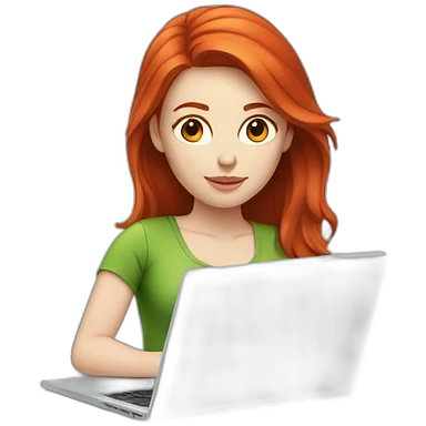 Woman red hair pale skin working with laptop emoji