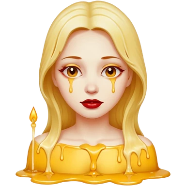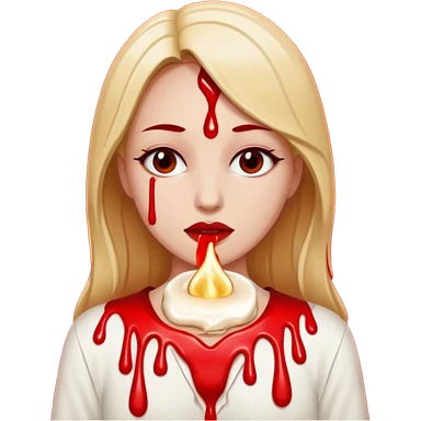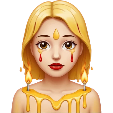 Woman dripping hot wax onto her own skin, controlled pain, ceremonial atmosphere emoji | AI Emoji Generator