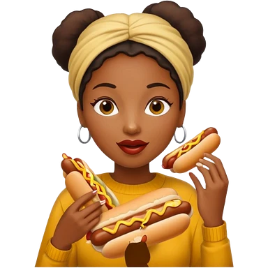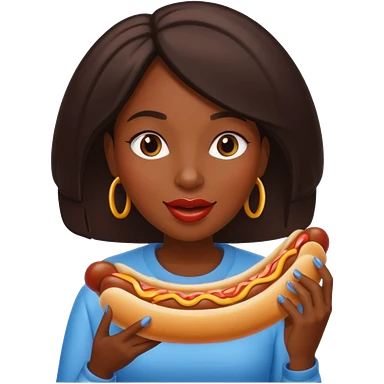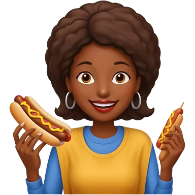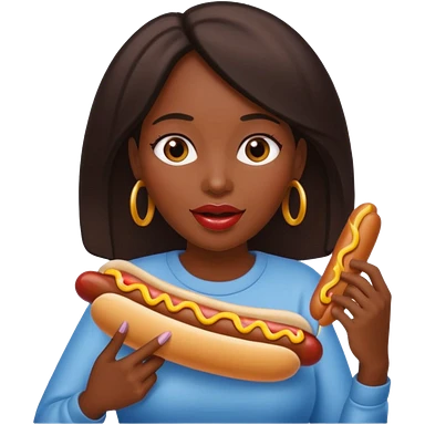 black woman eating hot dog emoji