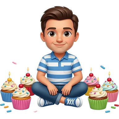 Make him sit in While turn his the sprinkles frosting birthday cake! emoji