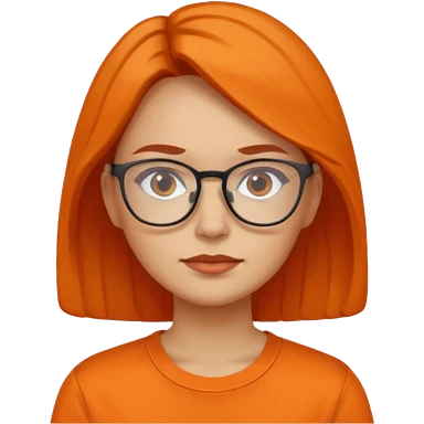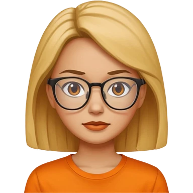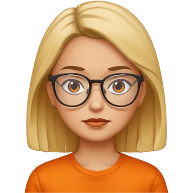woman with glasses and orange shirt not smiling emoji