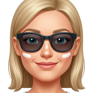 woman face fully covered sunscreen and sunglass, closeup bust size emoji
