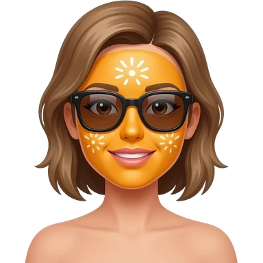 woman face fully covered light orange sunscreen and sunglass, closeup bust size emoji