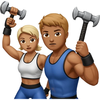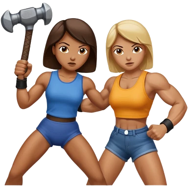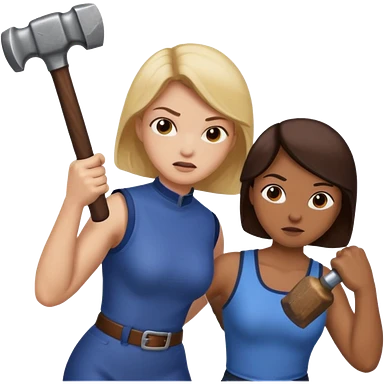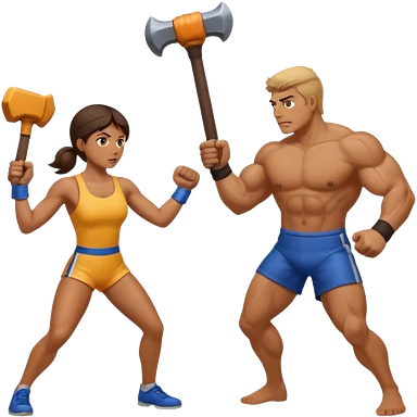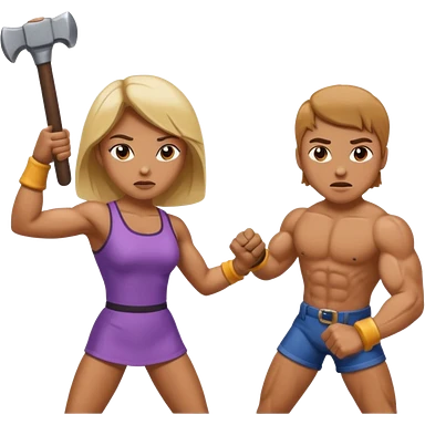 woman fightng man with a hammer and winning emoji | AI Emoji Generator