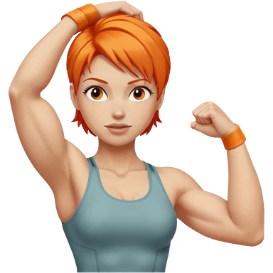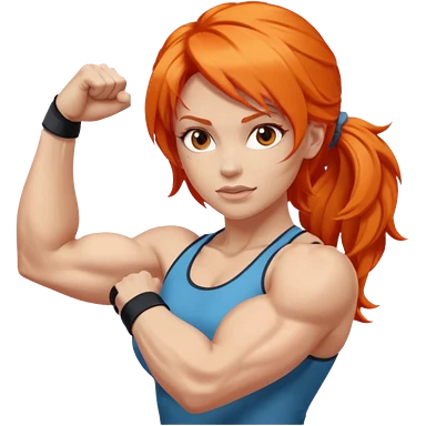 woman flexing her arm with orange hair emoji | AI Emoji Generator