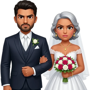 An indian man and a carribean woman getting married with a white woman judging them emoji
