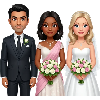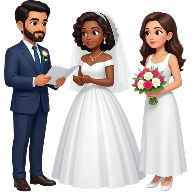 An indian man and a carribean woman getting married with a white woman carrying flowers for them emoji