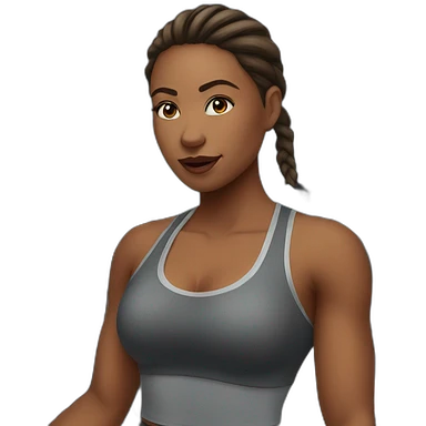 brunette woman in light blue gym clothes lifting a barbell, determined expression, clean background emoji