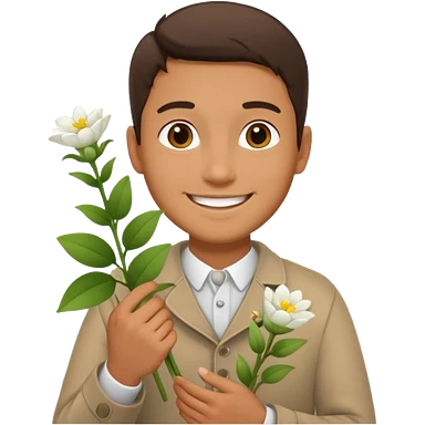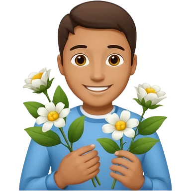 man holding white flowers in their hands emoji