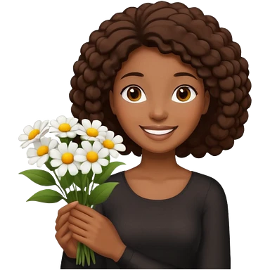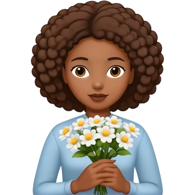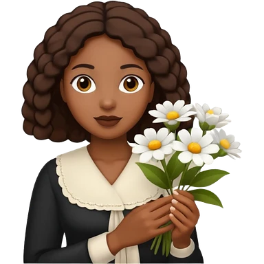 black woman holding white flowers in their hands emoji